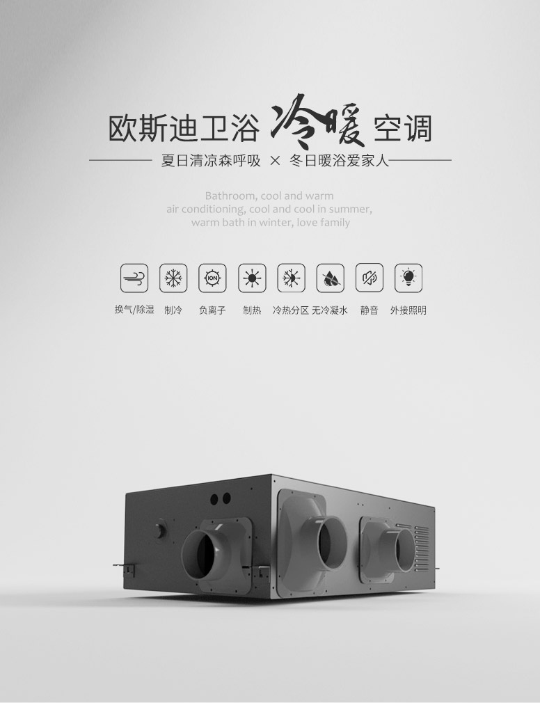 歐斯迪酷悅冷暖空調,冷暖風分區,快速吹風,循環制冷解決浴室悶熱,循環復式加熱均勻暖氣,降低噪音安靜沐浴。一年四季享受不一樣的體驗。