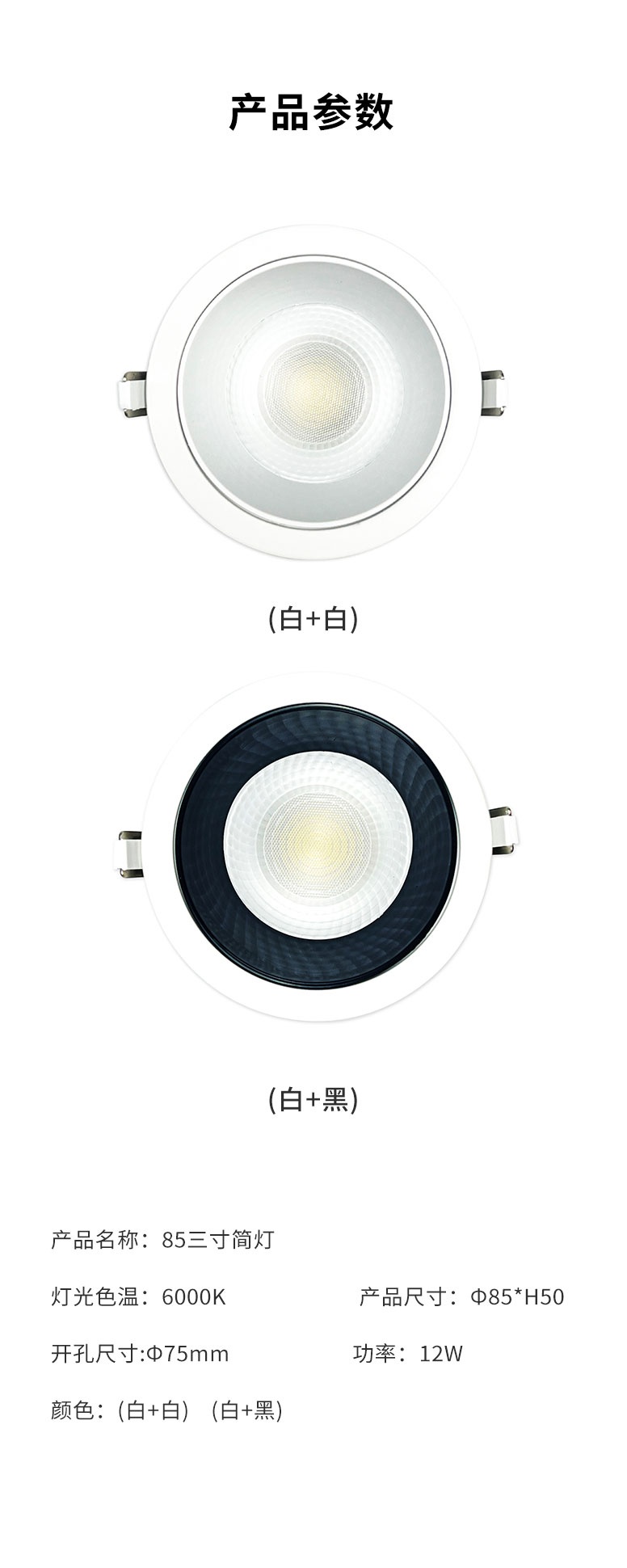 85三寸筒燈(白+黑)